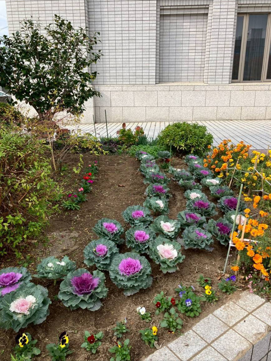 今年も立派な葉牡丹が花壇に入りました‼チューリップの球根も眠っています。